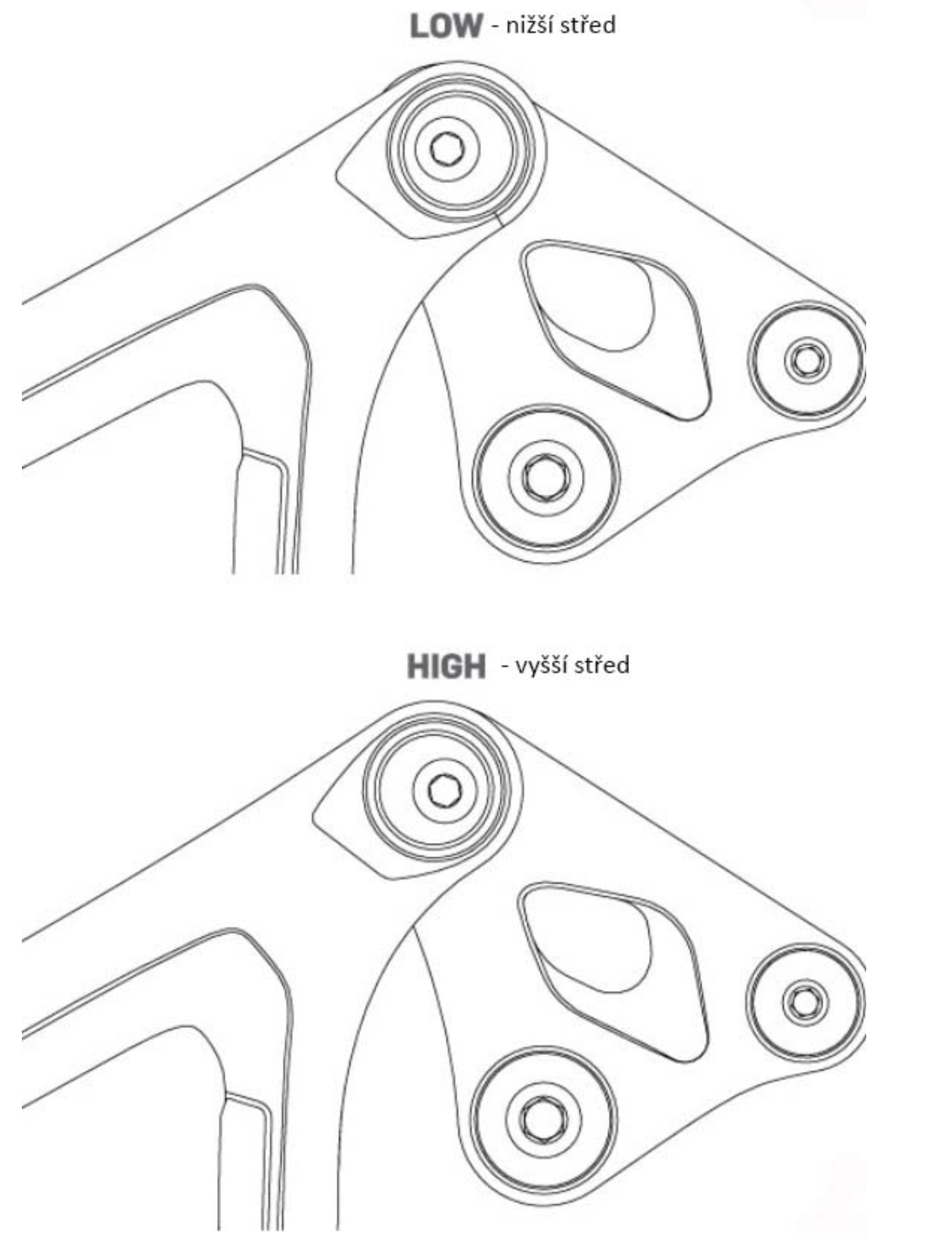Standardně je výška středu nastavená v nižší pozici (nižší střed).