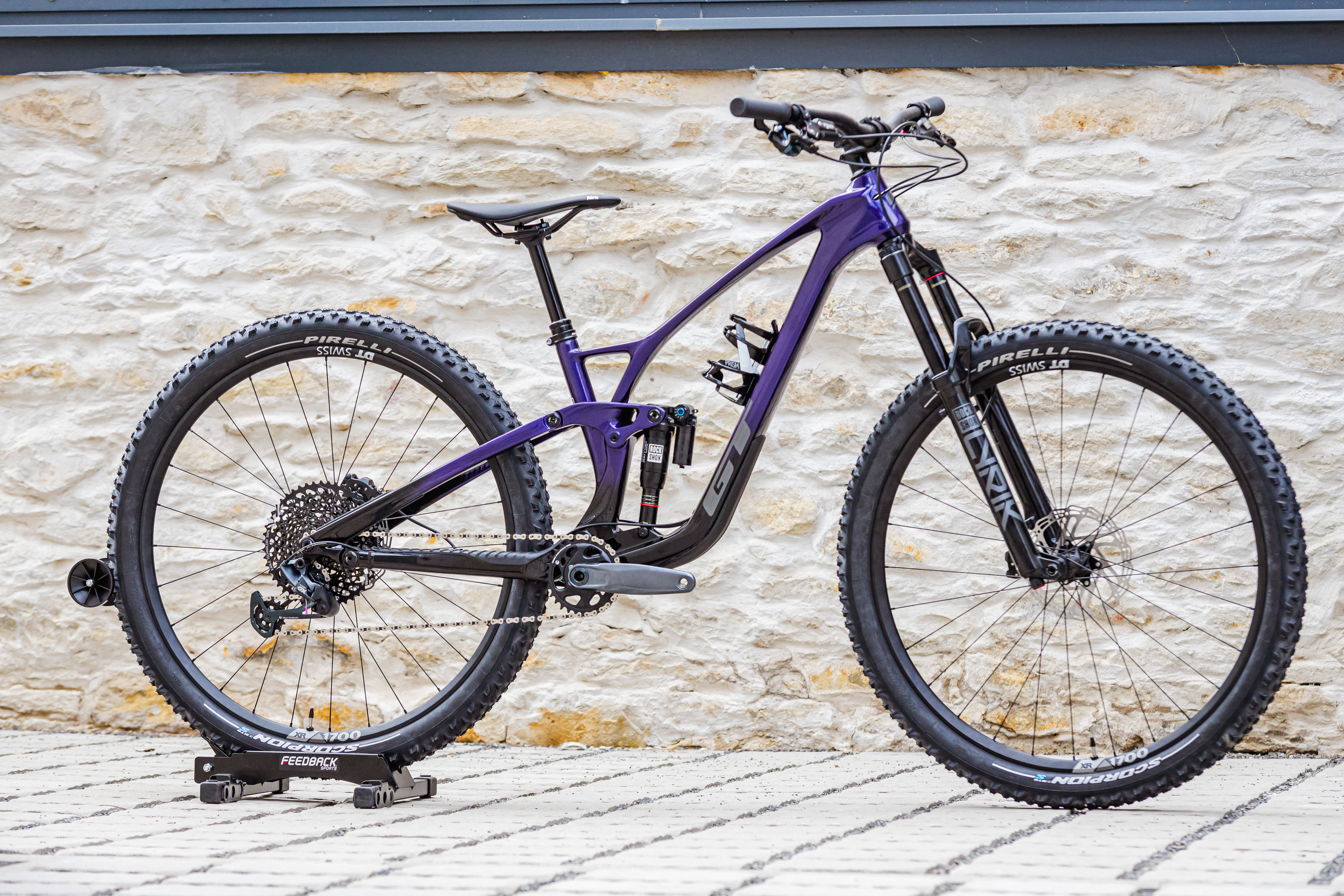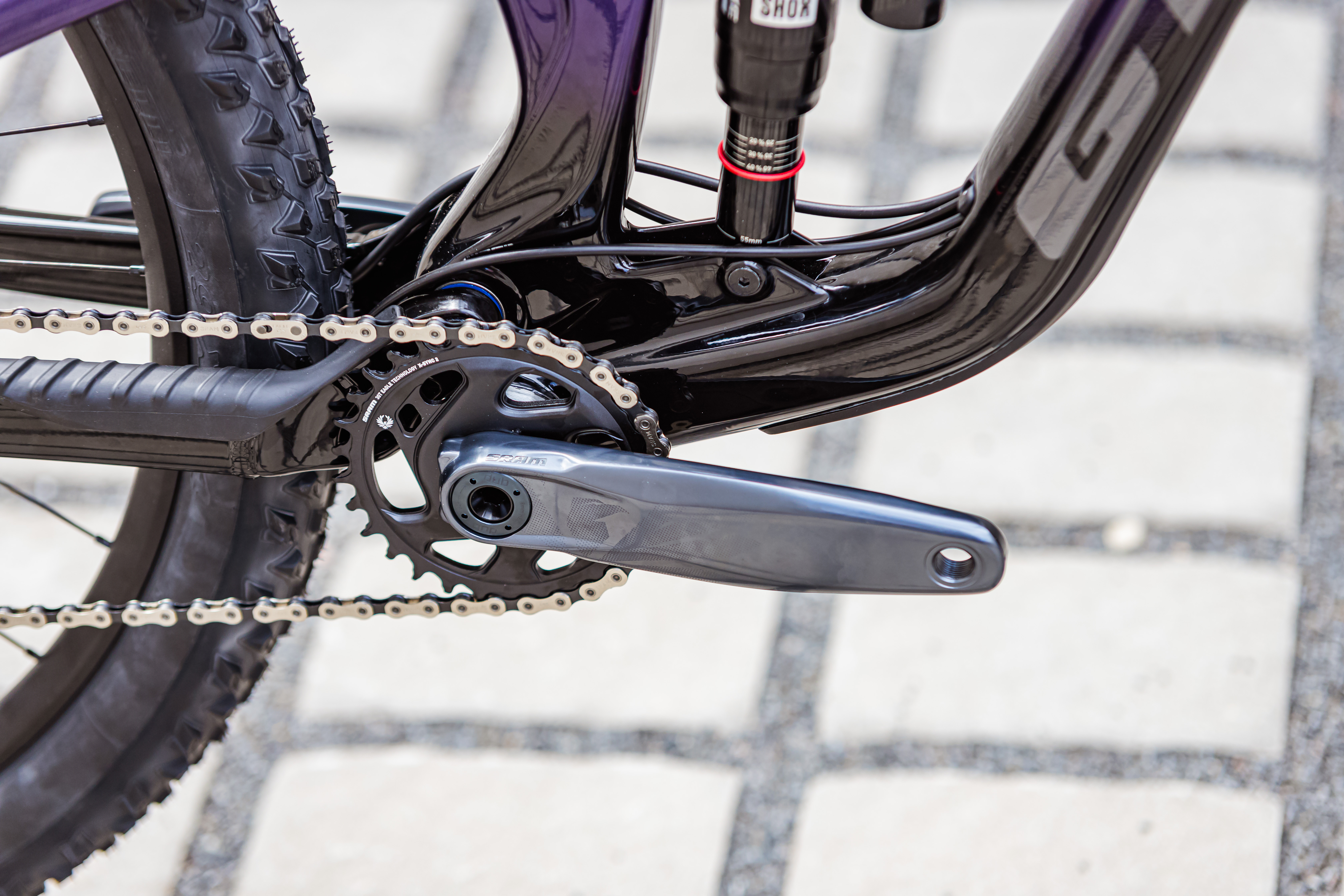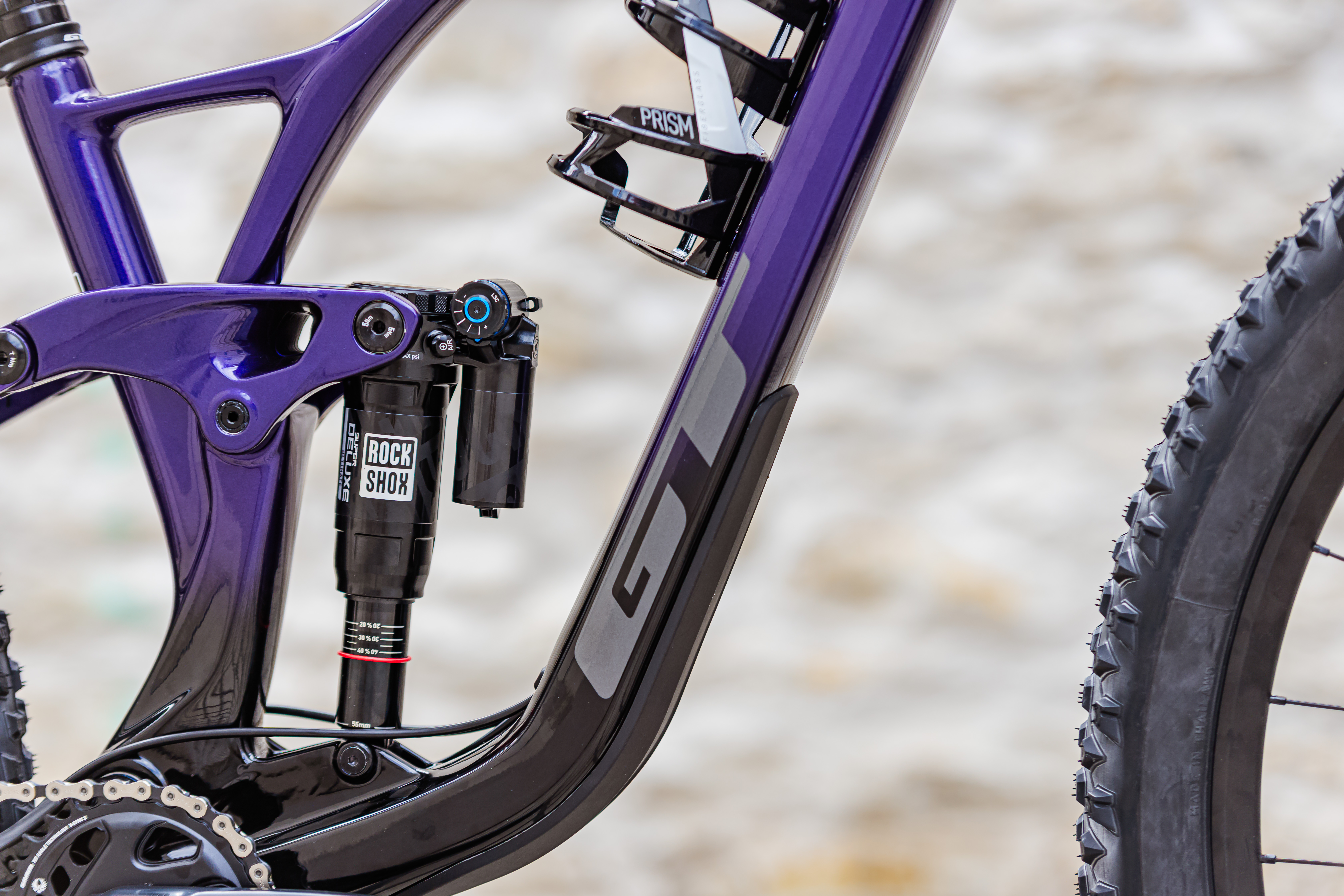 Tohle není sériovka, tohle je pořádná enduro střela postavená na karbonovém rámu GT Sensor. Vzadu pracuje špičkový tlumič RockShox SuperDeluxe Ultimate, vpředu dává jistotu vidlice RockShox Lyrik. Brzdný výkon obstarávají nejnovější Sram Maven a řazení sází na spolehlivý GX Eagle.