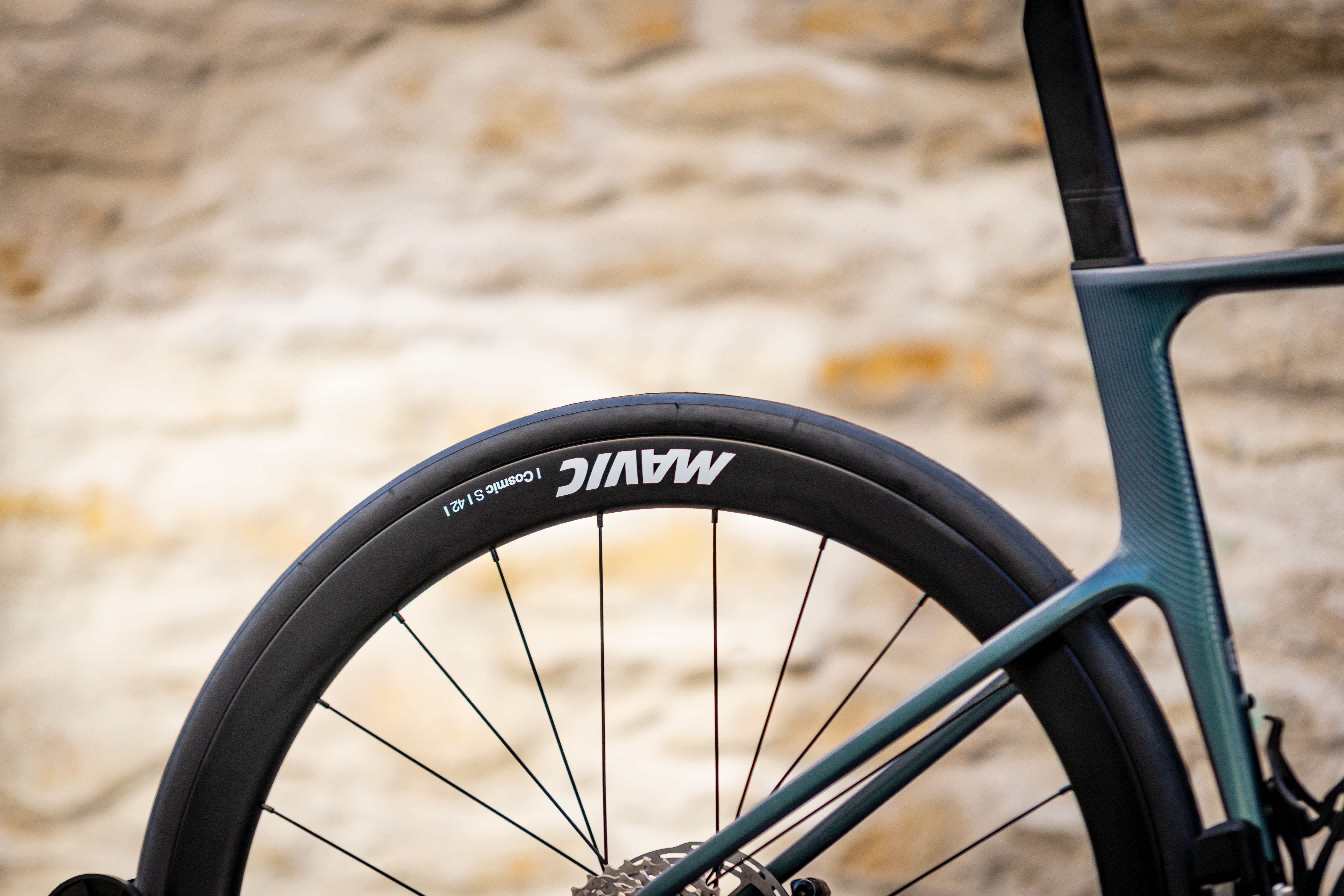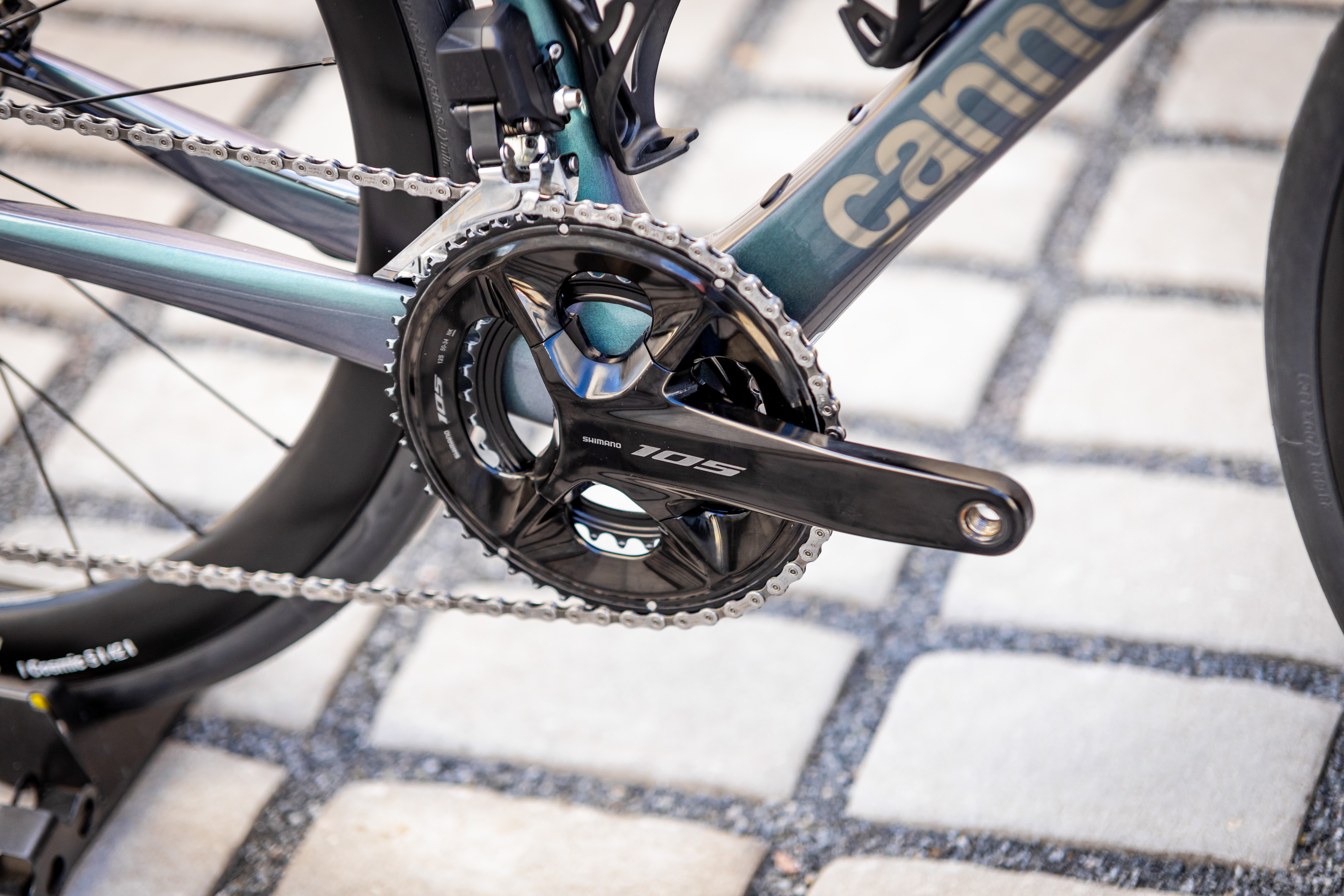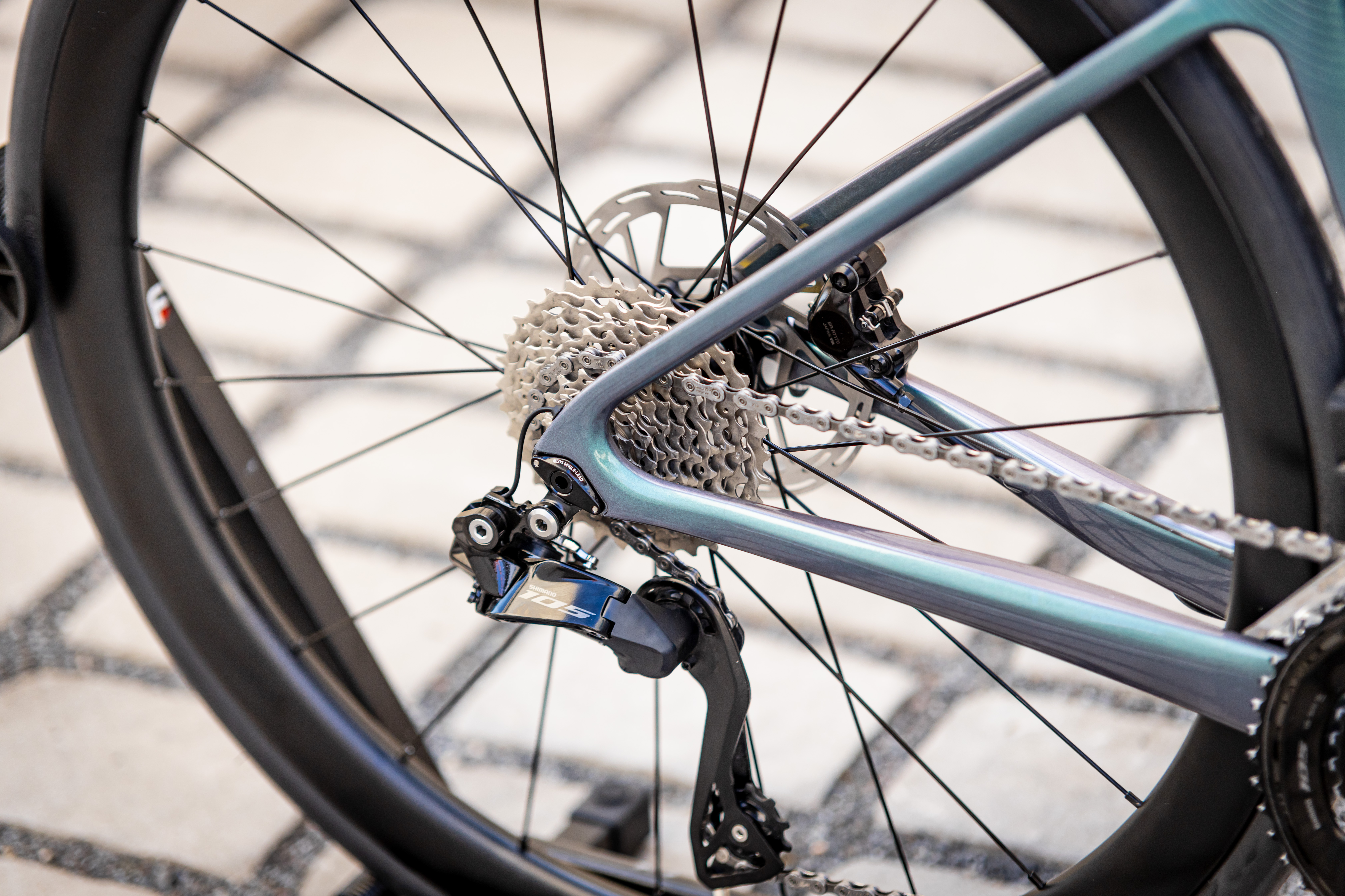 Osadili jsme ho sadou Shimano 105 Di2 2x12, což je "základní" elektronické řazení. Za dražšími sourozenci ovšem zaostává pouze v hmotnosti. Kazeta 11-34 a kliky 50/34 zajišťují široký rozsah převodů, který je ideální pro všechny silniční podmínky. Kola Mavic Cosmic S v kombinaci se širokými plášti se vyznačují nízkým valivým odporem zajišťují maximální rychlost a trakci.
