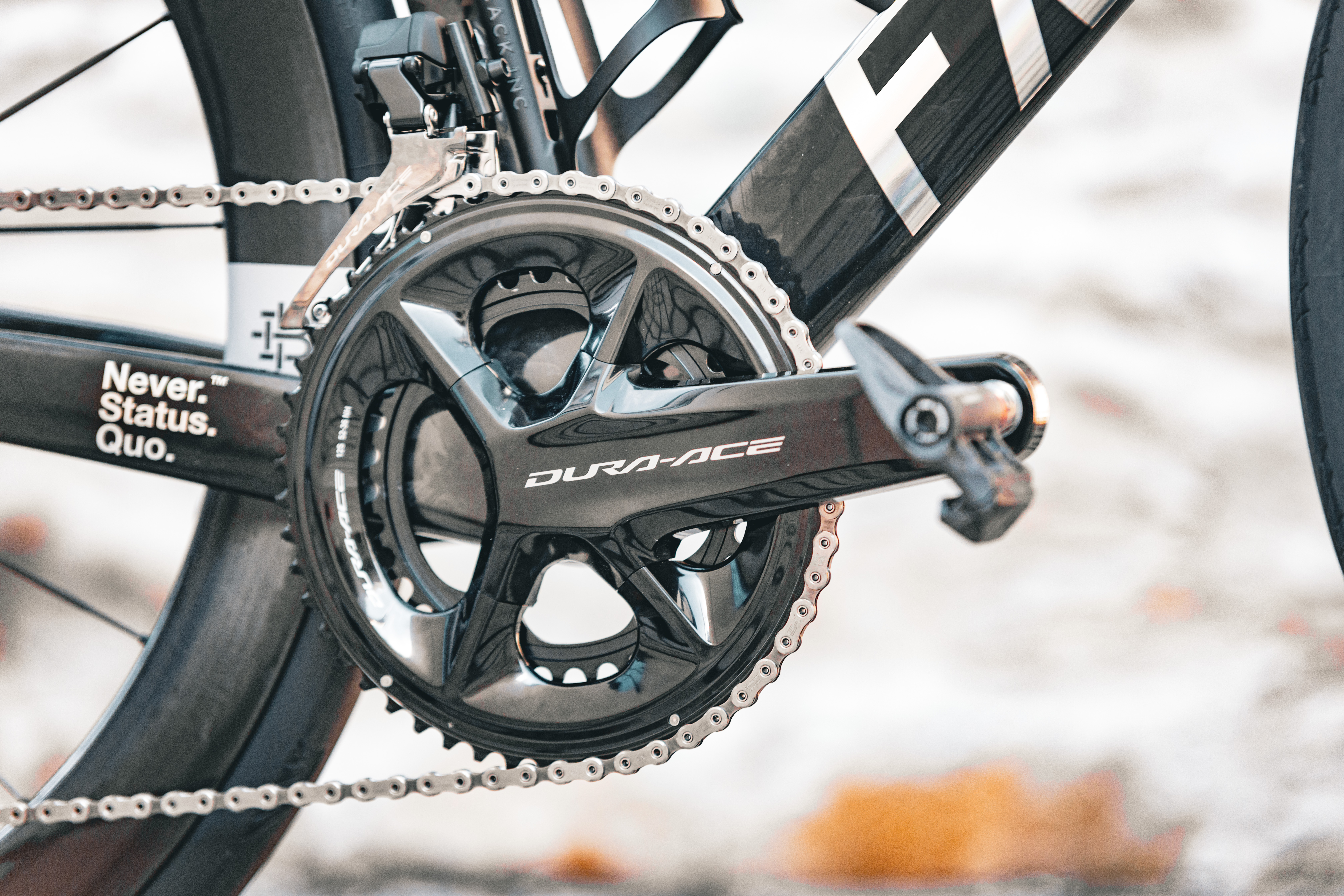 Samotná specifikace této stavby stojí za pozornost. Osadili jsme jej elektronickou sadou Shimano Dura-Ace Di2 2×12, která je synonymem přesnosti a spolehlivosti na té nejvyšší úrovni. Integrovaný kokpit Black Inc přináší čistý design a aerodynamickou účinnost, zatímco kola Black Inc v nejvyšší specifikaci dávají stroji nekompromisní rychlost a stabilitu i při vysokých rychlostech.